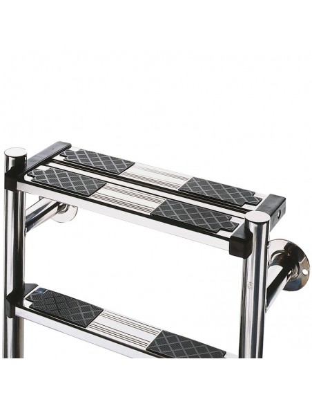 Parte inferior de escalera partida con peldaño Luxe + peldaño doble de seguridad.