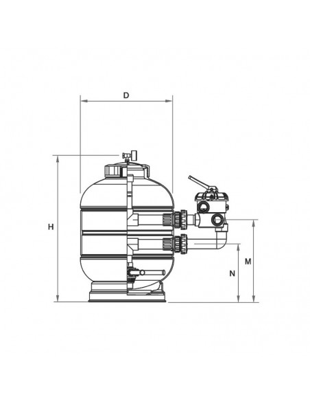 Equipados con manómetros y purgas de aire y de agua manuales integradas. Presión máxima :2,5 Kg/cm2 para filtros de D.380 mm, D.430 mm y D.480 mm y de 2 Kg/cm2 para filtros de D. 560 mmy D. 660 mm.