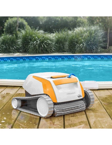 Disfruta del robot de tus sueños con un presupuesto asequible. Pequeño, ligero y fácil de manejar. HAMMER limpia el fondo y las paredes de la piscina, y es ideal para todo tipo de piscinas pequeñas.